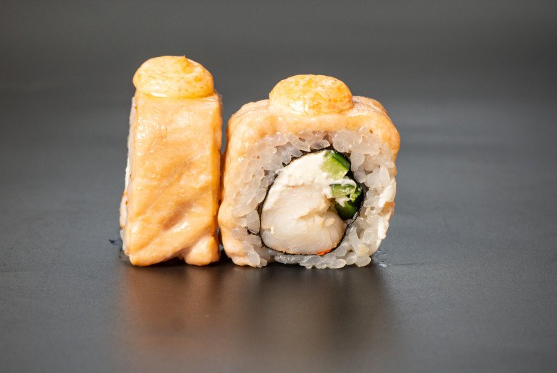 Рис, нори, креветки, лосось, сыр творожный, огурец, масаго, майонез (8 шт.)