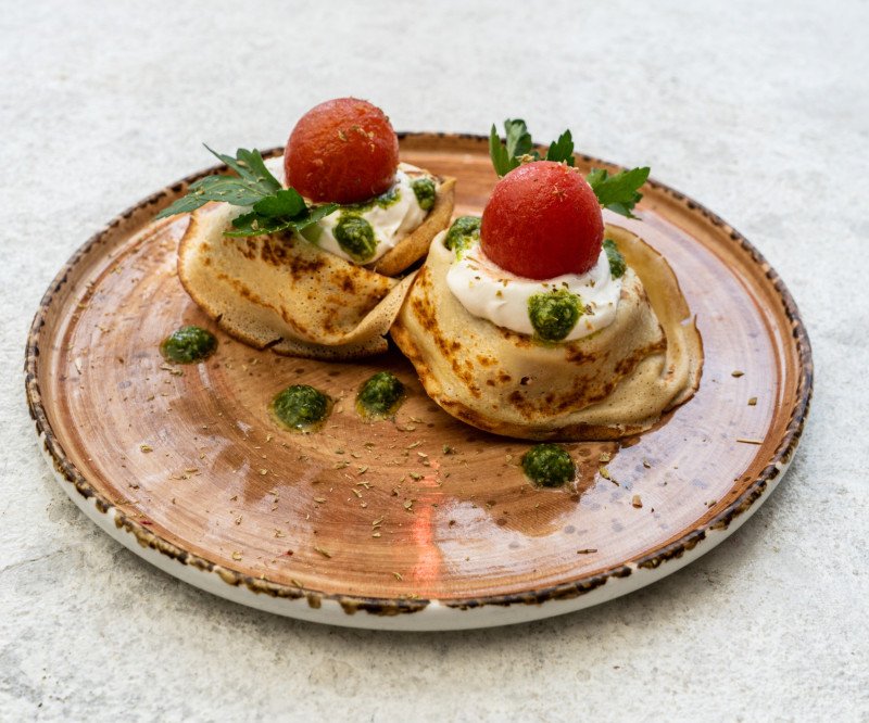 мука, яйцо, молоко, масло растительное, страчателла, песто, черри, орегано